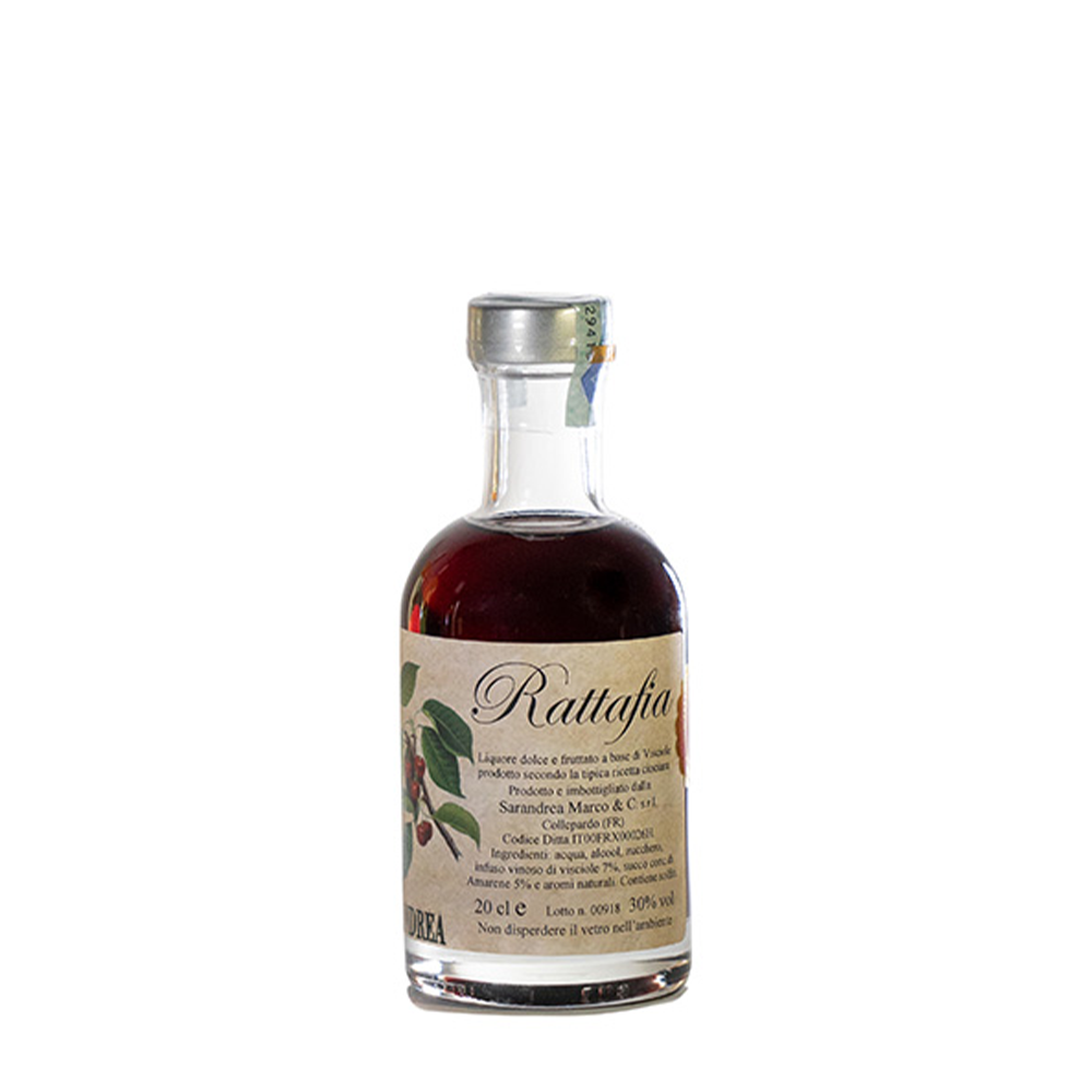 La Ratafia è un liquore preparato con un infuso di visciole con aggiunta di cannella. La storia dice che il suo nome curioso è derivato dall’antica formula di rito “ut rata fiat“ (“affinchè siano mantenuti i patti“) formula usata dai plenipotenziari quando , siglato un accordo, mettevano il suggello di un brindisi con tale liquore a garanzia del patto sottoscritto.  Nelle  famiglie ciociare ed abruzzesi la stessa tradizione ha avuto seguito nelle contrattazioni matrimoniali  tra i genitori dei ragazzi che si apprestavano alle nozze. Da qui la derivazione del nome infatti : ut rata fiat – Ratafia